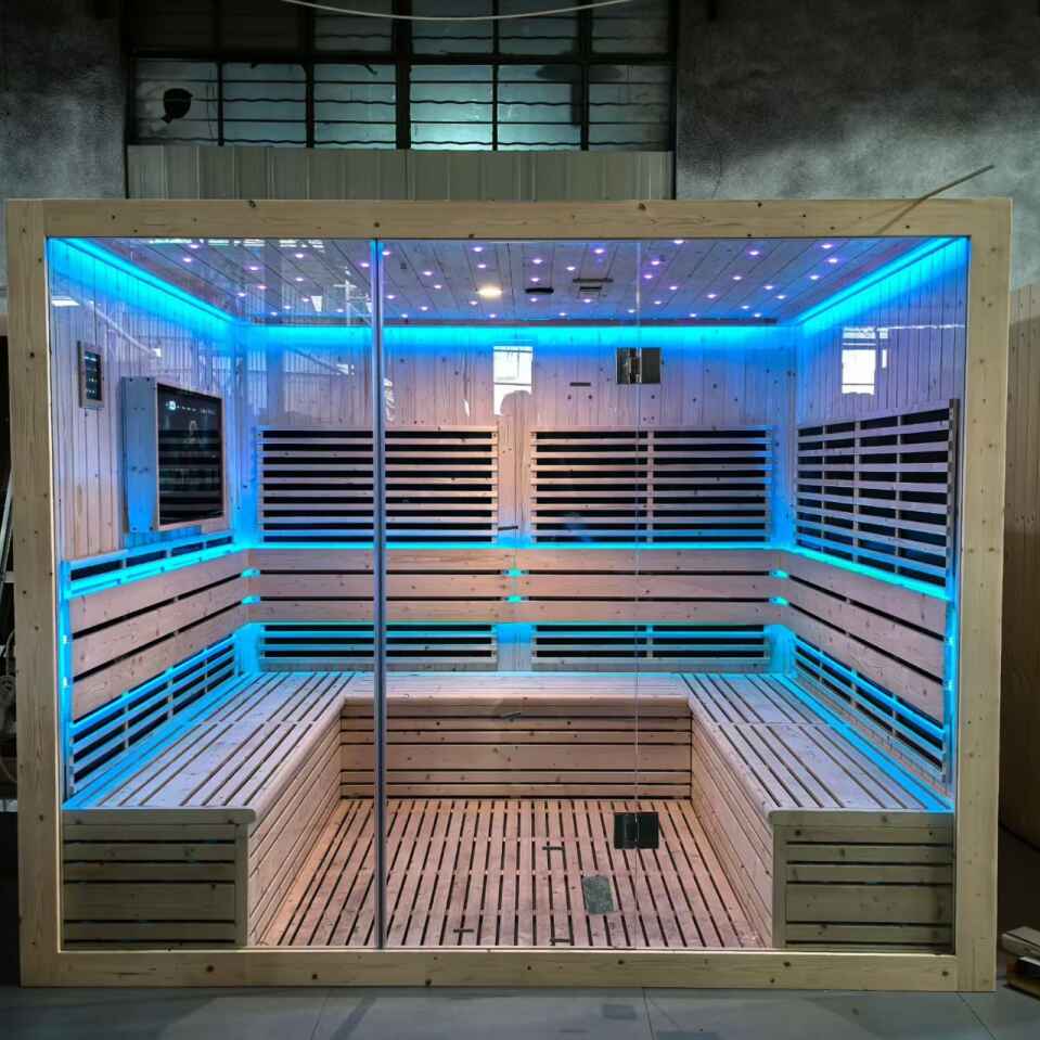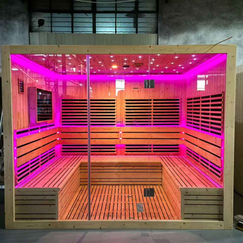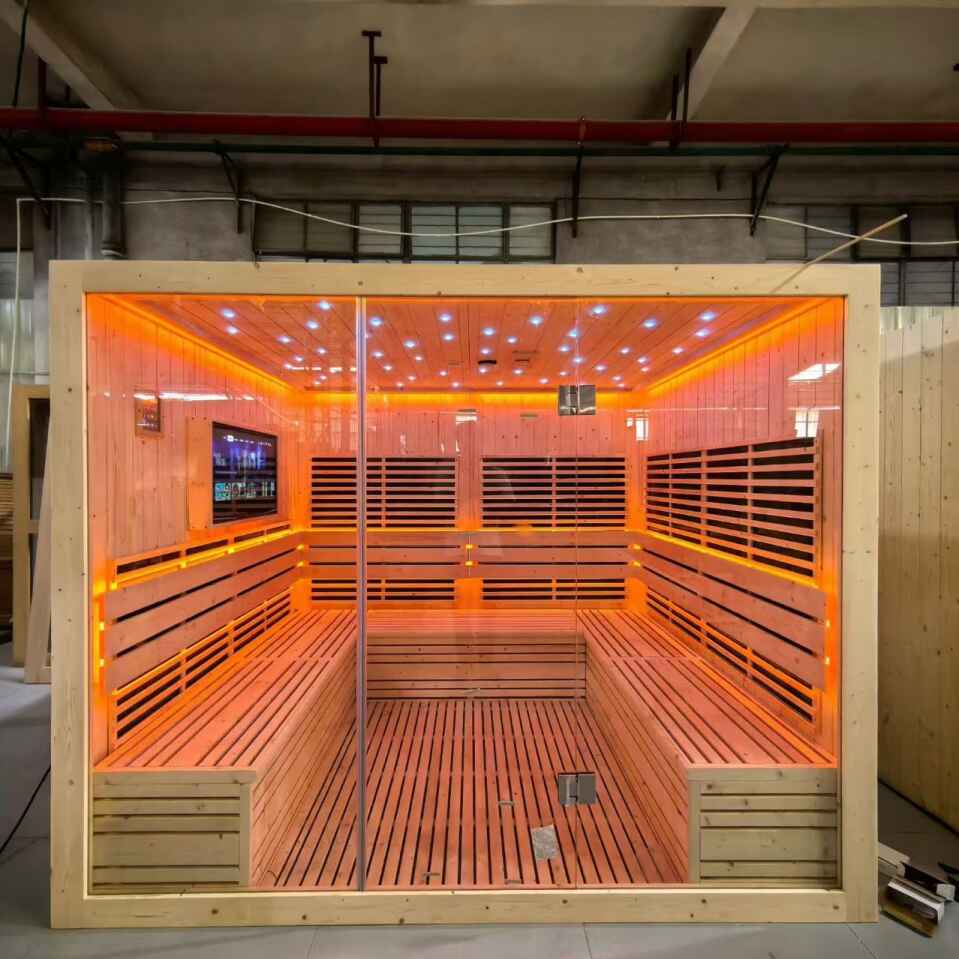 Direkayasa untuk 5-10 pengguna, bilik sauna ini sesuai untuk perhimpunan keluarga, rakan-rakan, atau ruang komersial kecil seperti pusat spa dan kesejahteraan. Dibina dengan kayu sauna berkualiti tinggi, ia memastikan ketahanan sambil membawa estetika yang semula jadi dan hangat ke ruang anda.