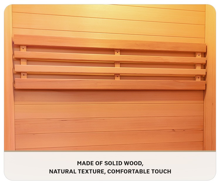 Dua kayu premium Kanada, Hemlock dan Red Cedar, dipilih. Kayunya keras dan tahan lama, dengan tekstur semula jadi yang jelas dan warna yang seragam. Sifat semula jadi setiap kepingan kayu memberikan sauna dengan tekstur yang unik, menyuntik gen estetik semula jadi dan mewah ke dalam ruang kesihatan rumah anda. sauna inframerah dalaman untuk rumah.
