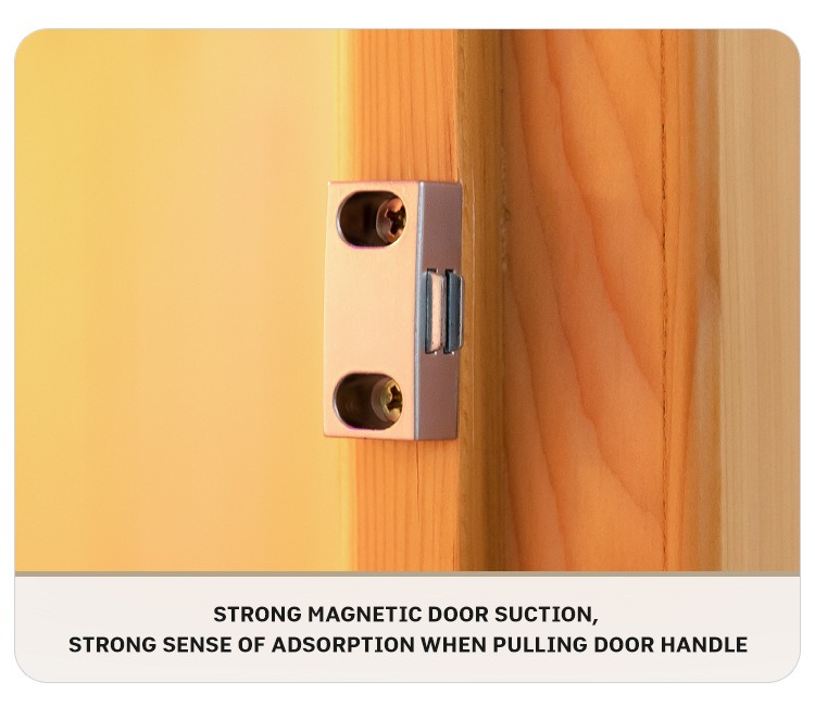 - Engsel Logam & Tangkapan Pintu Magnetik: Engsel logam mempunyai kapasiti galas beban yang kuat tanpa ubah bentuk, dan tangkapan pintu magnetik menyerap rapat untuk mengunci haba dan privasi.