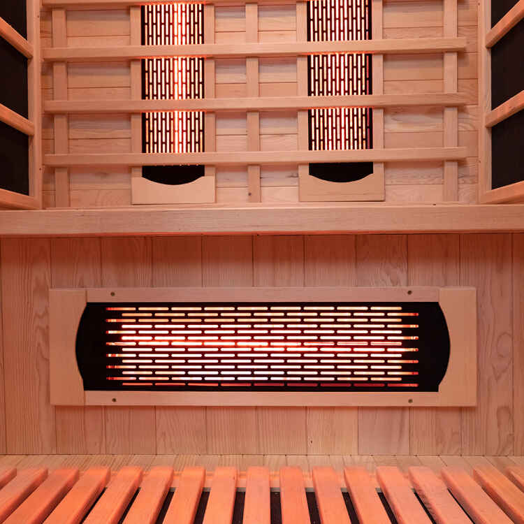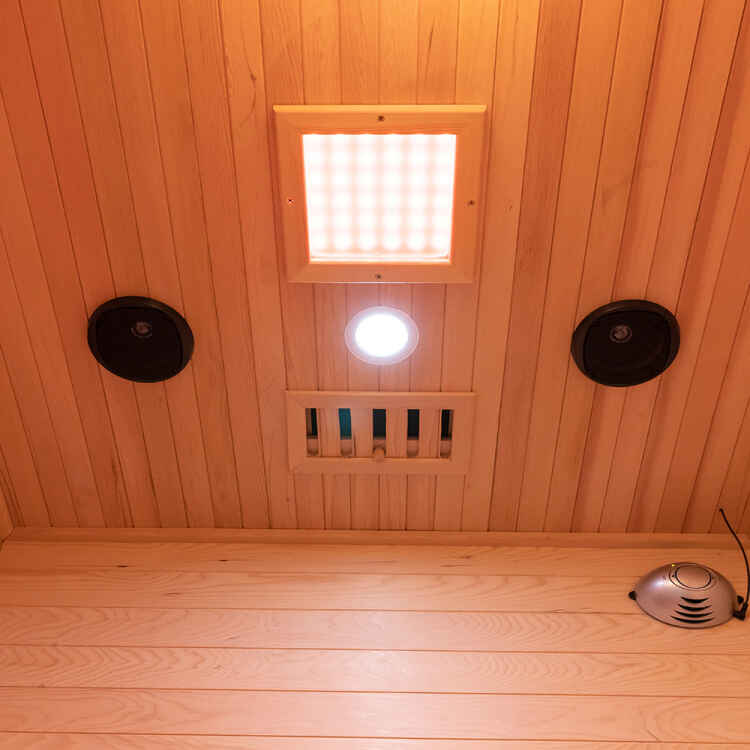 Bilik Sauna Inframerah dan Wap kayu untuk 1-3 orang penuh dengan ciri-ciri canggih untuk meningkatkan perjalanan kesihatan anda: Pemanas Inframerah & Plat Pemanas Graphene Inframerah Jauh (menyediakan pemanasan yang sekata dan cekap untuk peluh yang mendalam dan menenangkan); Pengion Oksigen (membersihkan udara di dalam sauna, mewujudkan suasana yang segar dan mencergaskan); Lampu Baca & Pembesar Suara (membolehkan anda membaca atau mendengar muzik sambil menikmati sesi sauna anda); Panel Kawalan (membolehkan pelarasan mudah suhu, masa dan tetapan lain untuk pengalaman yang diperibadikan); Dapur Sauna & Tiub Gelombang Ringan (bekerjasama untuk menjana wap dan haba inframerah, memenuhi keperluan wap dan pencinta sauna inframerah jauh).