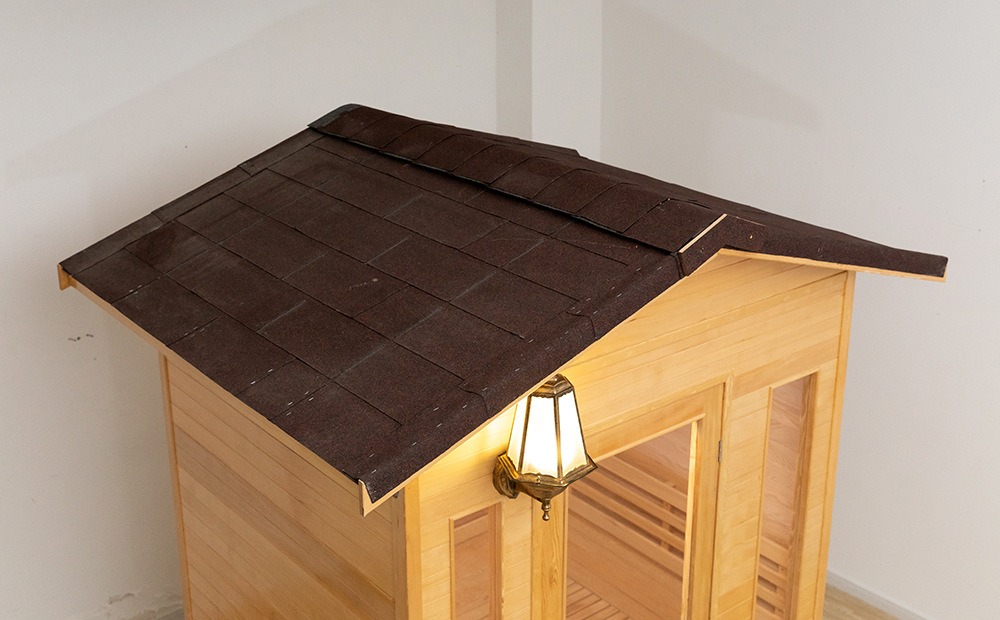 Bumbungnya menggunakan struktur kalis air dan pelindung matahari berbilang lapisan. Atap atap yang melebar boleh menghalang air hujan daripada menghakis hemlock dengan berkesan, memastikan penggunaan produk yang stabil dalam pelbagai persekitaran luar. Bentuk keseluruhan dengan bijak menggabungkan tekstur semula jadi hemlock dengan pintu kaca atas Fengshui dan lampu dinding retro, menjadi "ciri landskap yang boleh digunakan" di halaman, menambah daya tarikan unik pada ruang luar.