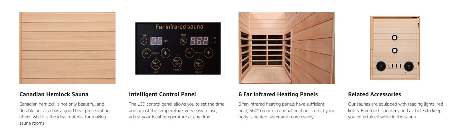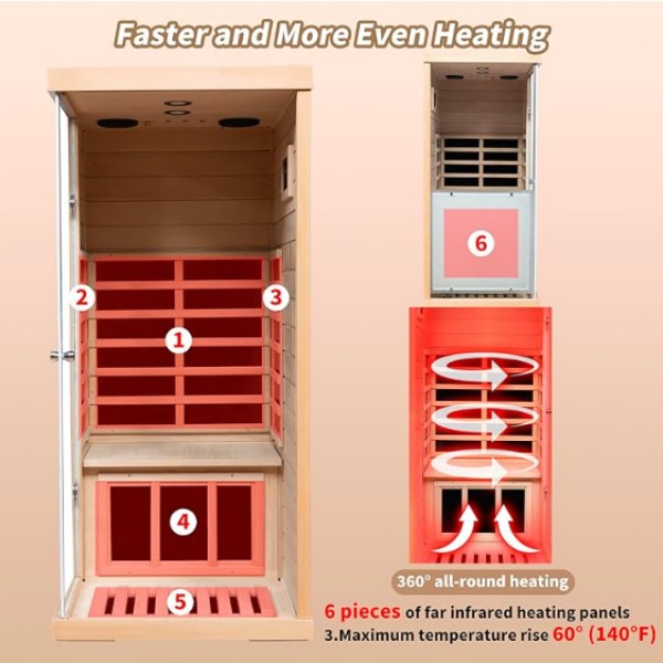· 【360° Pemanasan Sepenuhnya, Dilengkapi dengan Sistem Hiburan Pintar】: Berbanding dengan sauna dalaman yang lain, kami mempunyai 6 panel pemanasan epoksi inframerah jauh, pemanasan lebih cepat dan lebih sekata, dengan kenaikan suhu maksimum 60° (140℉) , jadi anda tidak perlu lagi risau tentang haba yang tidak mencukupi. Dilengkapi dengan 1*lampu bacaan LED, 1*lampu merah dan 1*pembesar suara Bluetooth (nama peranti Bluetooth: Speaker BT), anda boleh membaca dan mendengar muzik semasa berada di sauna.