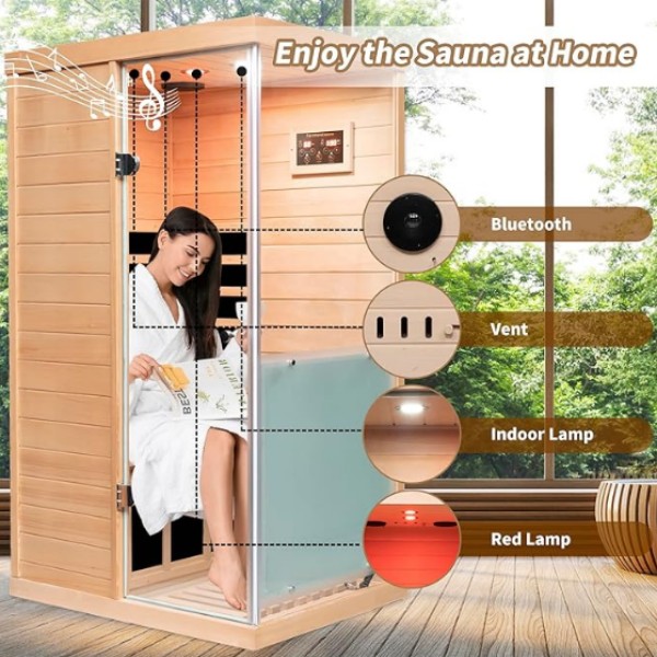 Sauna Kecil untuk 1 orang menampilkan reka bentuk yang padat dan indah, menjadikannya sesuai untuk keluarga atau ruang pangsapuri kecil. Walaupun ruang dalamannya padat, ia cukup untuk memuatkan seorang untuk berehat dengan selesa dan menikmati sauna.
